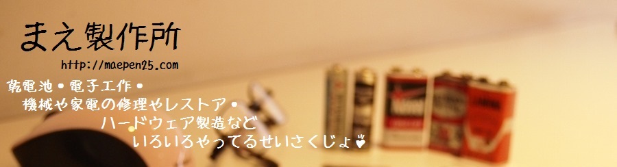 まえ製作所へようこそ! まえのブログ-mae's blog!-の拡張版!乾電池コレクションやラジオ、電子工作。趣味全開のページです。 現在コンテンツを増やそうと努力中!htmlを手打ちしてるのでデザイン崩れはゆるしてくださいね♪ 2014年頃の"まえ製作所"を復活させてみました→旧まえ製作所プロフィール私、「まえ」のプロフィールなど
