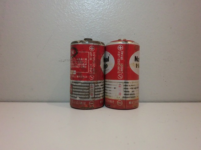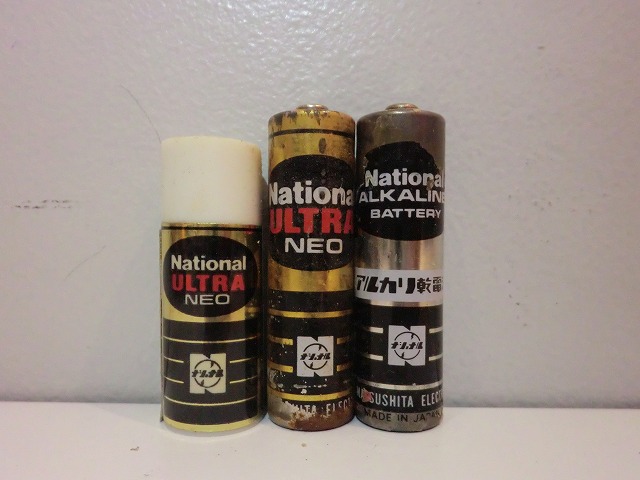 <右> National ALKALINE--単3形--アルカリ電池--製造年月日腐食にて読めず--
