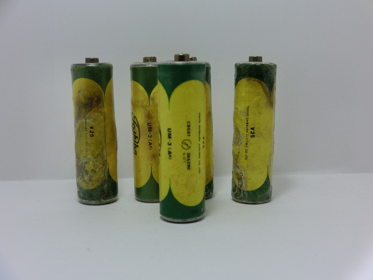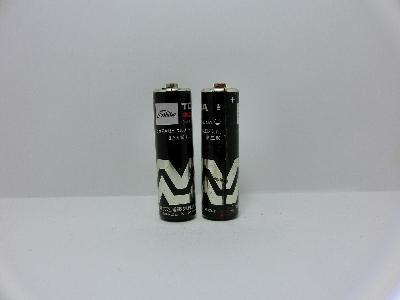 缶外装であるので一度電解液が噴出してしまうと塗装も剥がれてしまう中でかろうじて展示できるレベルの電池である。