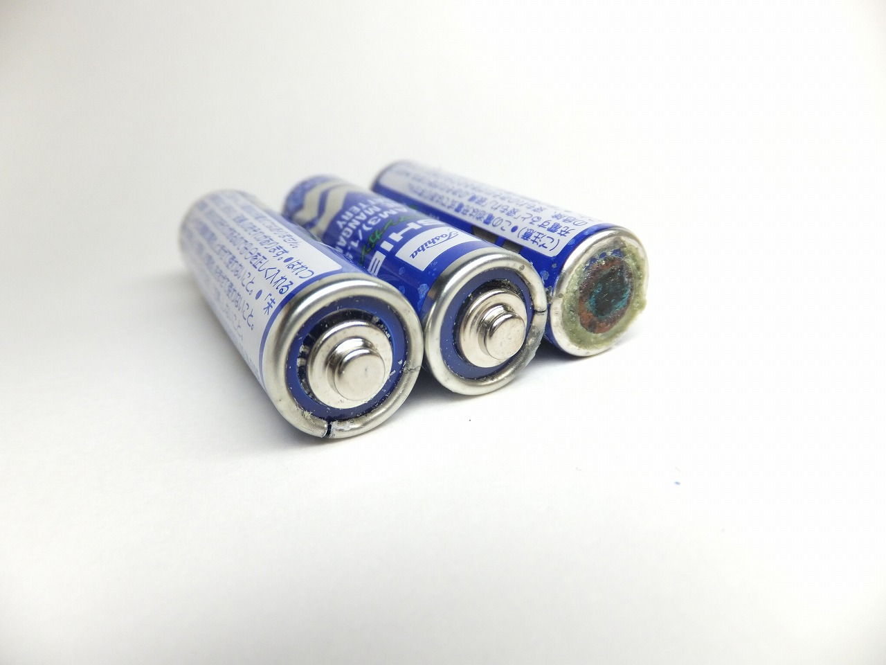 この乾電池の状態は良い。4本中1本は