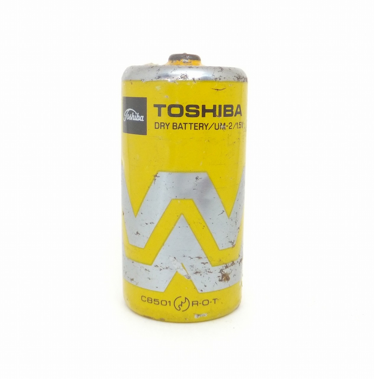 1970年代製造の単2形乾電池で外装は黄色。本体には、