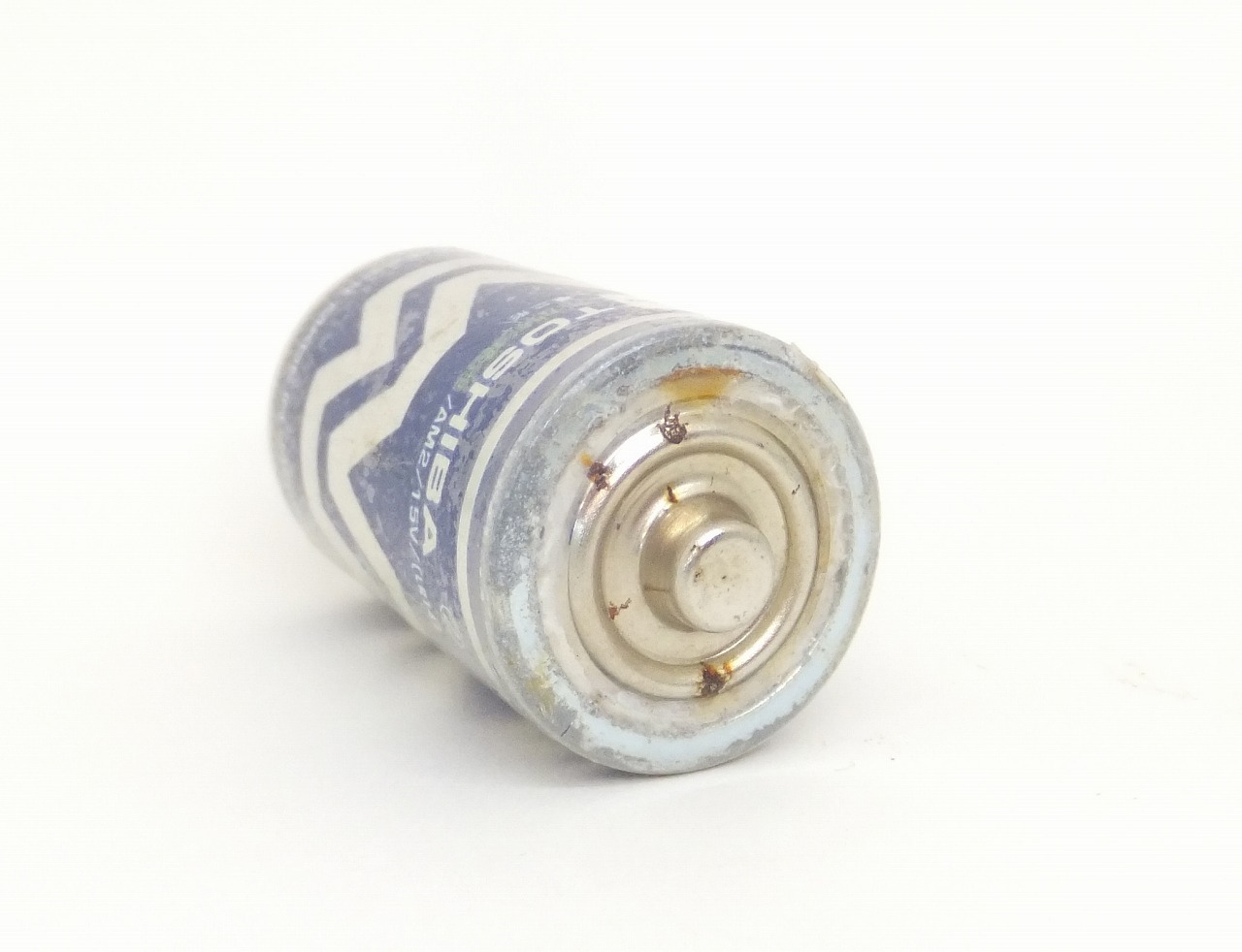 電池中央上部にはいわゆる"傘マーク"があり下に英字の「TOSHIBA」とあまり見受けないデザイン。
