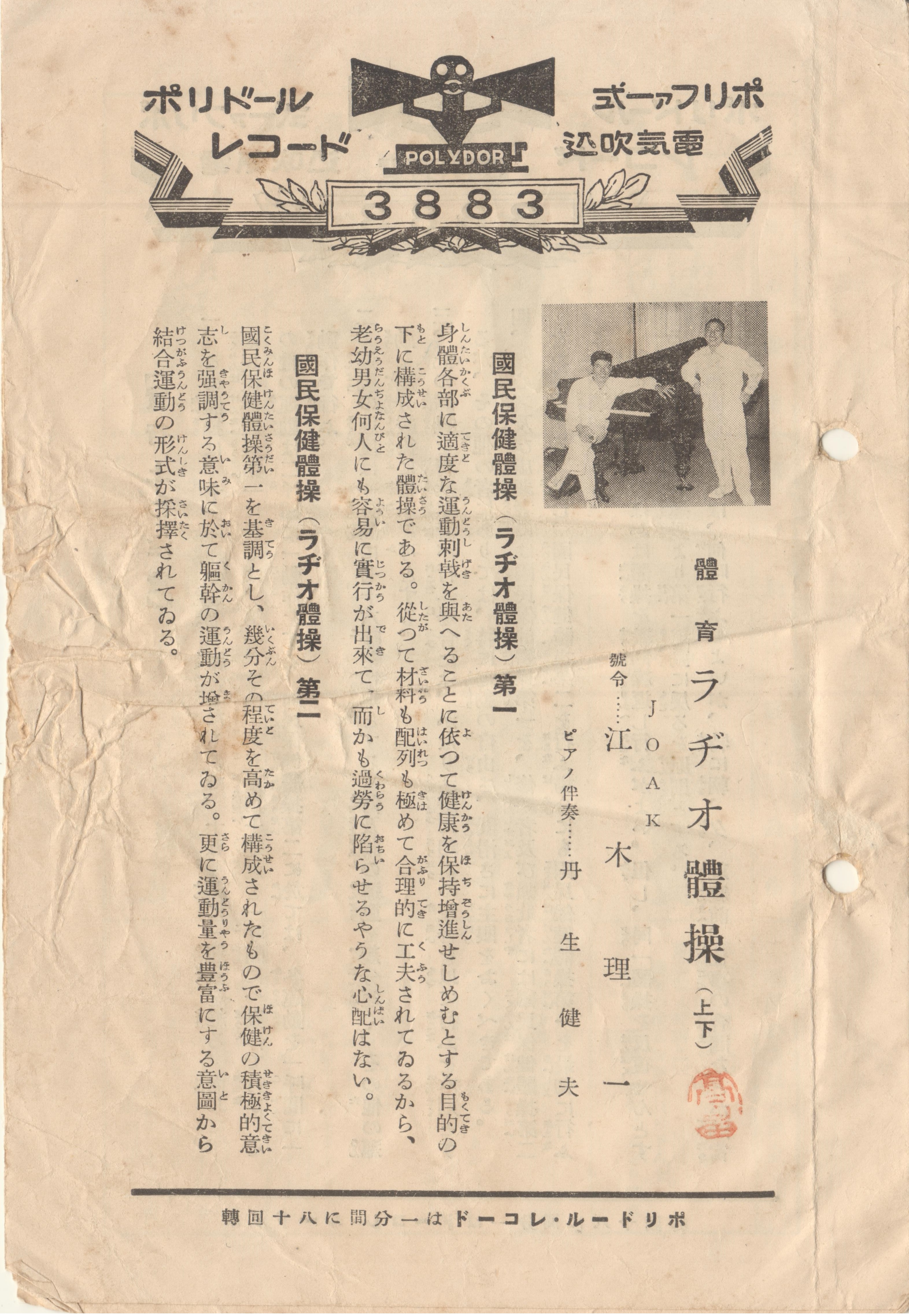 この画像はレコード袋にレコードと共に入っていた体操の順序が記載してある冊子。