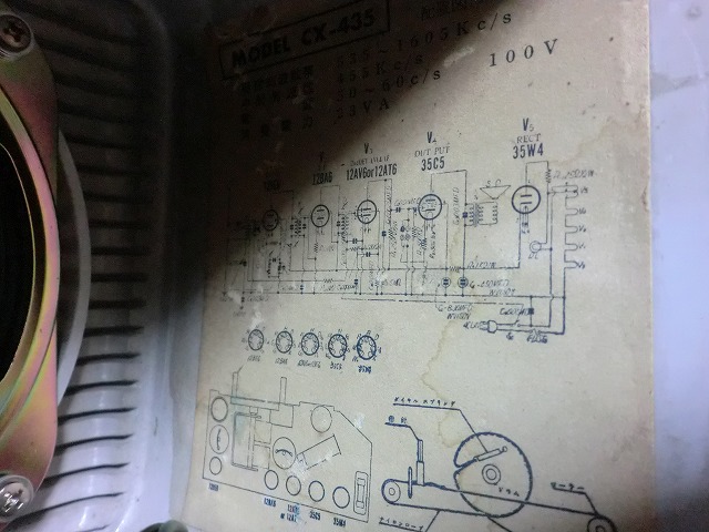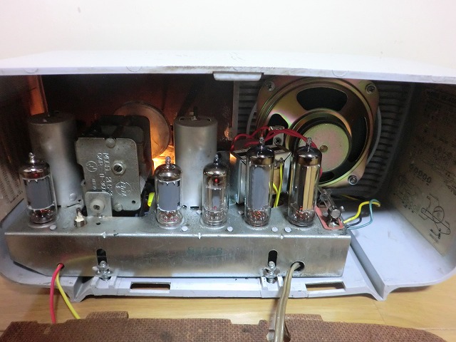 これは修理完了後の内部の様子。真空管は2本、35c4と12AV6は中古品。ストックがなかったの・・(泣)